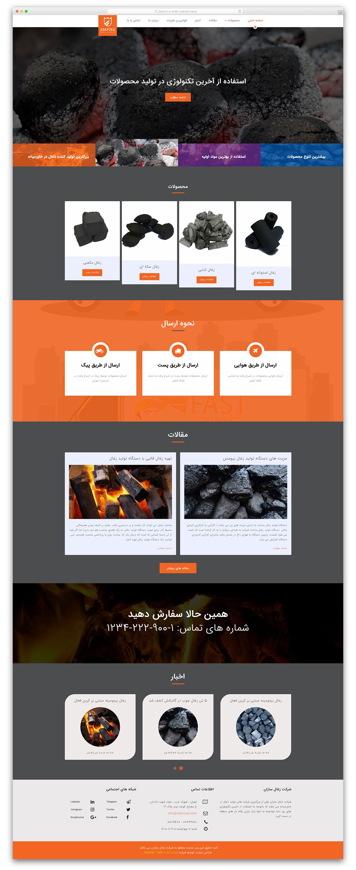 امکانات:بنر اسلاید شو بخش مقالات، بخش اخبار، فرم تماس،